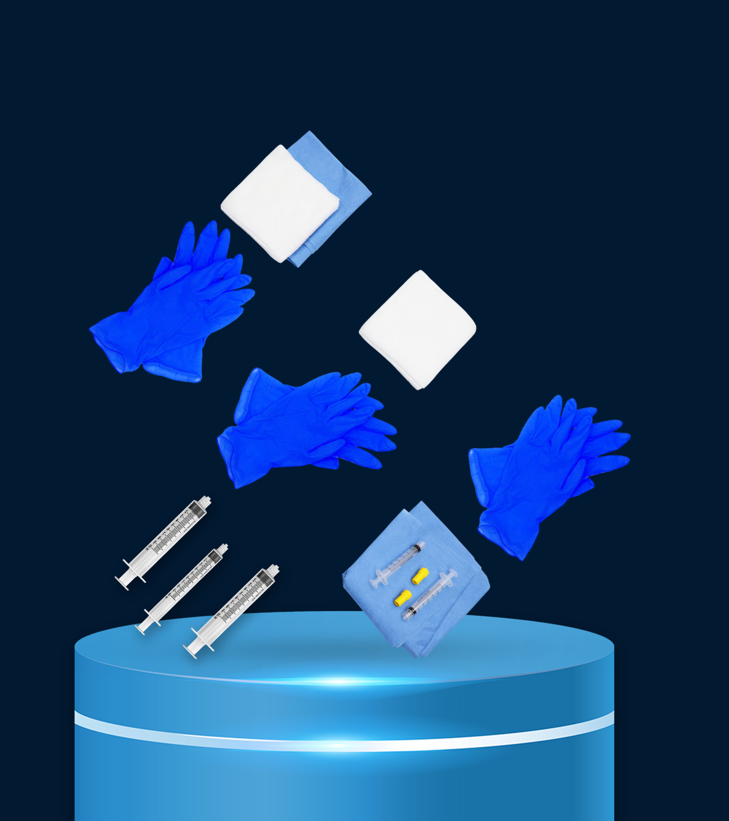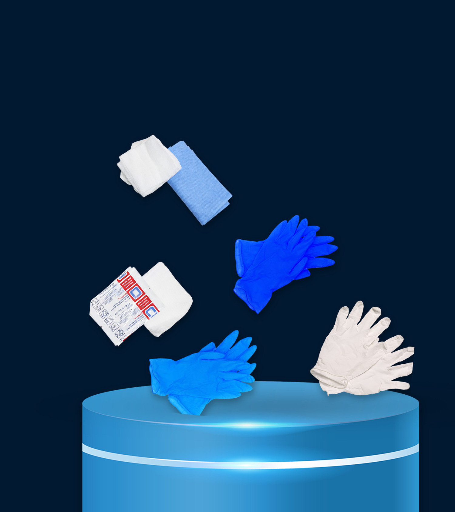 | Gauze Square Cut | 10 Nos. | Gloves Blue | 10 Nos. |